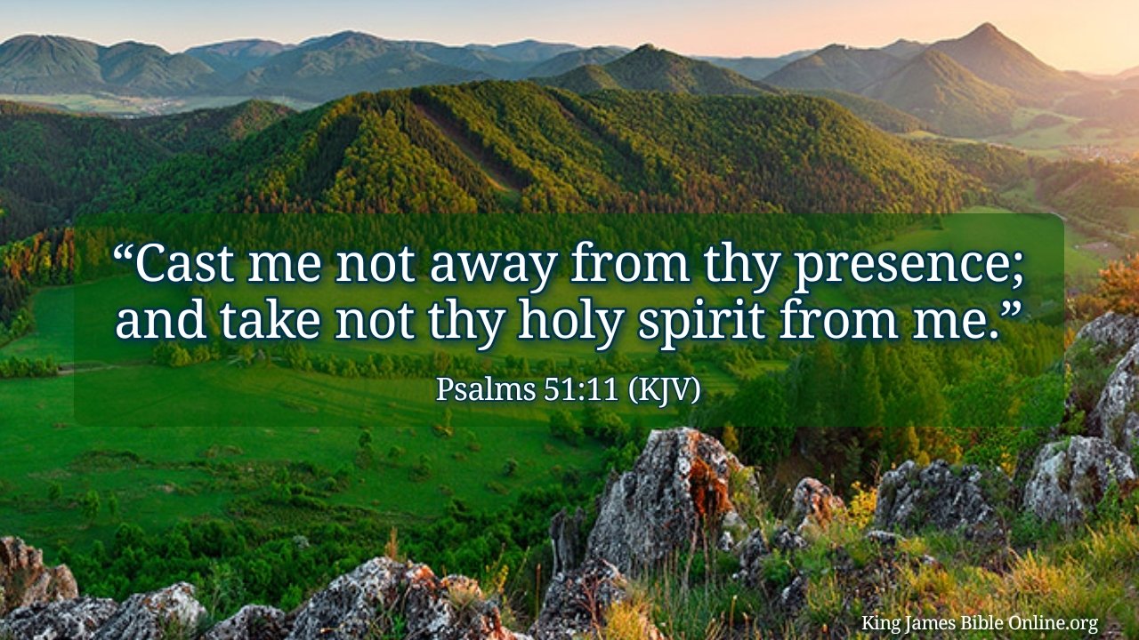 Do not cast me away from Your presence And do not take Your Holy Spirit from me. Wipe away my wrongdoings according to your great compassion. Psalm 5111-13 New Revised Standard Version NRSV 11 Do not cast me away from your presence and do not take your holy spirit from me.
