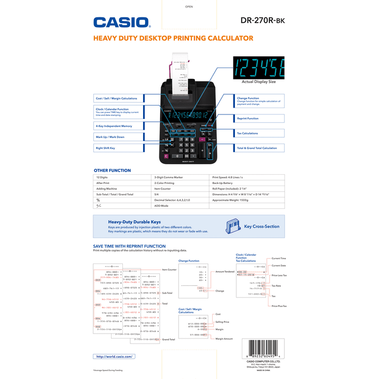 Casio Dr 270r Bk Printing Calculator 2 Color Print Clock Calendar Black Walmart Com